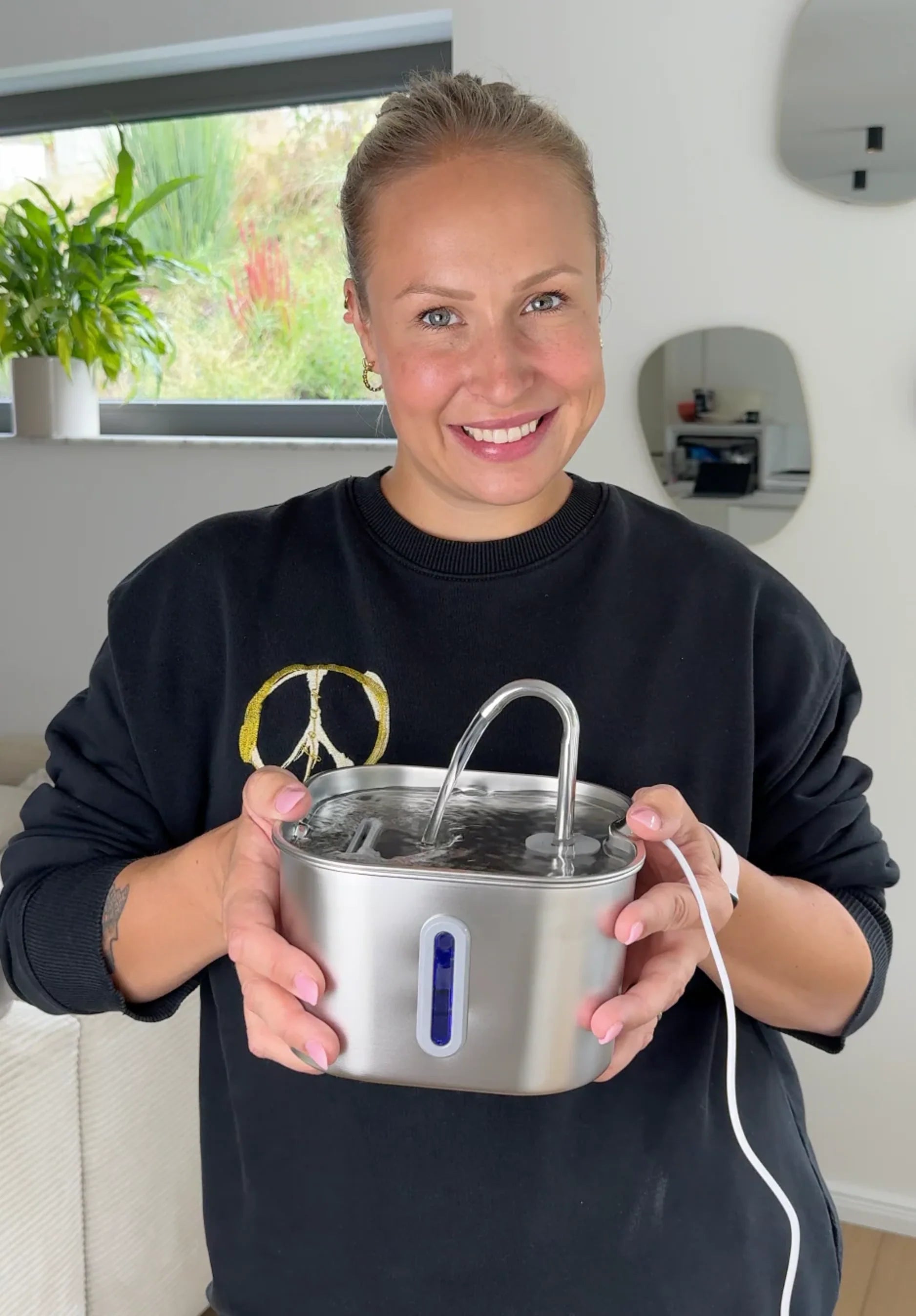 Vi så hende næsten aldrig drikke før, og vi var ofte i tvivl om, om hun fik nok væske i hverdagen. Efter vi fik fontænen, går hun hen og drikker flere gange om dagen. Den er også helt stille, hvilket betyder, at den kan stå fremme hele tiden uden at forstyrre.